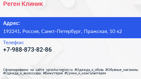 Реген Клиник по адресу 192241, Россия, Санкт-Петербург, Пражская, 10 к2 в дальнейшем Организация, размещена в следующих категориях: