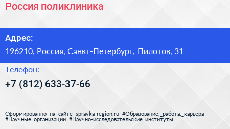 Россия, поликлиника по адресу 196210, Россия, Санкт-Петербург, Пилотов, 31 в дальнейшем Организация, размещена в следующих категориях: