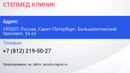 СТЕПМЕД КЛИНИК по адресу 195027, Россия, Санкт-Петербург, Большеохтинский проспект, 16 к1 в дальнейшем Организация, размещена в следующих категориях: