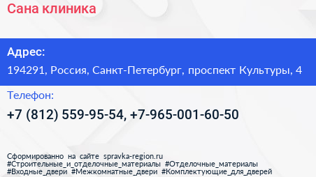 Сана, клиника по адресу 194291, Россия, Санкт-Петербург, проспект Культуры, 4 в дальнейшем Организация, размещена в следующих категориях: