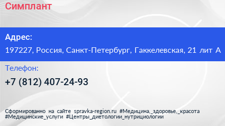 Симплант по адресу 197227, Россия, Санкт-Петербург, Гаккелевская, 21 лит А в дальнейшем Организация, размещена в следующих категориях: