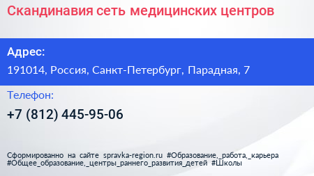 Скандинавия, сеть медицинских центров по адресу 191014, Россия, Санкт-Петербург, Парадная, 7 в дальнейшем Организация, размещена в следующих категориях: