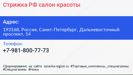 Стрижка РФ, салон красоты по адресу 193168, Россия, Санкт-Петербург, Дальневосточный проспект, 14 в дальнейшем Организация, размещена в следующих категориях: