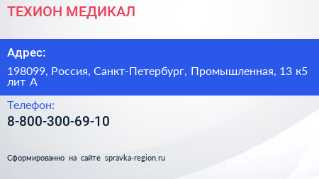 ТЕХИОН МЕДИКАЛ по адресу 198099, Россия, Санкт-Петербург, Промышленная, 13 к5 лит А в дальнейшем Организация, размещена в следующих категориях: