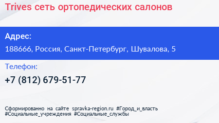 Trives, сеть ортопедических салонов по адресу 188666, Россия, Санкт-Петербург, Шувалова, 5 в дальнейшем Организация, размещена в следующих категориях:
