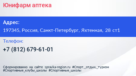 Юнифарм, аптека по адресу 197345, Россия, Санкт-Петербург, Яхтенная, 28 ст1 в дальнейшем Организация, размещена в следующих категориях: