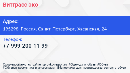 Витграсс-эко по адресу 195298, Россия, Санкт-Петербург, Хасанская, 24 в дальнейшем Организация, размещена в следующих категориях: