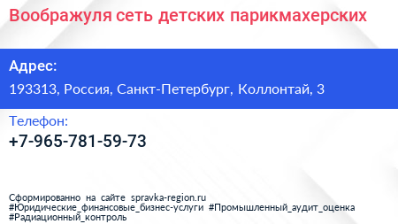 Воображуля, сеть детских парикмахерских по адресу 193313, Россия, Санкт-Петербург, Коллонтай, 3 в дальнейшем Организация, размещена в следующих категориях: