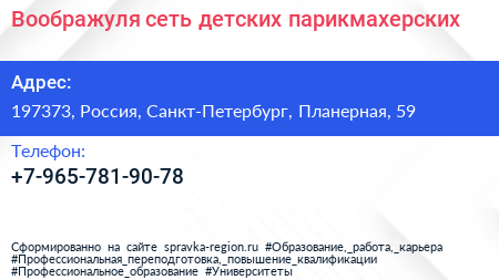 Воображуля, сеть детских парикмахерских по адресу 197373, Россия, Санкт-Петербург, Планерная, 59 в дальнейшем Организация, размещена в следующих категориях: