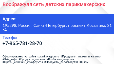 Воображуля, сеть детских парикмахерских по адресу 195298, Россия, Санкт-Петербург, проспект Косыгина, 31 к1 в дальнейшем Организация, размещена в следующих категориях: