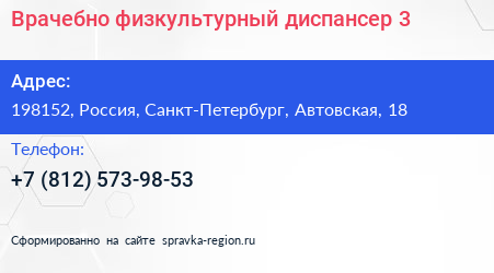 Врачебно-физкультурный диспансер №3 по адресу 198152, Россия, Санкт-Петербург, Автовская, 18 в дальнейшем Организация, размещена в следующих категориях: