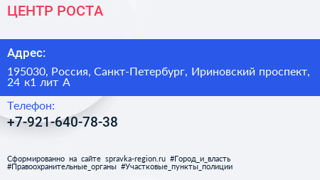 ЦЕНТР РОСТА по адресу 195030, Россия, Санкт-Петербург, Ириновский проспект, 24 к1 лит А в дальнейшем Организация, размещена в следующих категориях: