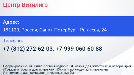 Центр Витилиго по адресу 191123, Россия, Санкт-Петербург, Рылеева, 24 в дальнейшем Организация, размещена в следующих категориях: