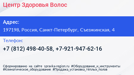 Центр Здоровья Волос по адресу 197198, Россия, Санкт-Петербург, Съезжинская, 4 в дальнейшем Организация, размещена в следующих категориях: