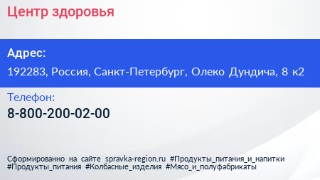 Центр здоровья по адресу 192283, Россия, Санкт-Петербург, Олеко Дундича, 8 к2 в дальнейшем Организация, размещена в следующих категориях: