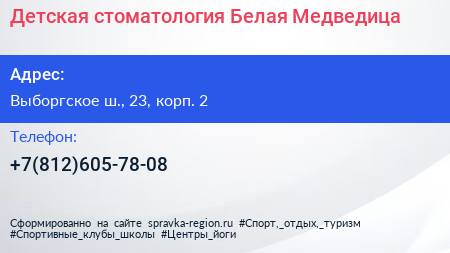 Детская стоматология «Белая Медведица» по адресу Выборгское ш., 23, корп. 2 в дальнейшем Организация, размещена в следующих категориях:
