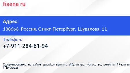 fisena.ru по адресу 188666, Россия, Санкт-Петербург, Шувалова, 11 в дальнейшем Организация, размещена в следующих категориях: