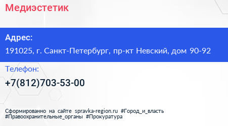 Медиэстетик по адресу 191025, г. Санкт-Петербург, пр-кт Невский, дом 90-92 в дальнейшем Организация, размещена в следующих категориях: