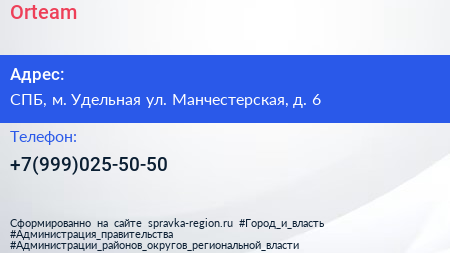 Orteam по адресу СПБ, м. Удельная ул. Манчестерская, д. 6 в дальнейшем Организация, размещена в следующих категориях: