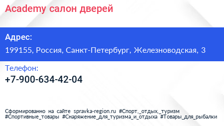 Academy, салон дверей по адресу 199155, Россия, Санкт-Петербург, Железноводская, 3 в дальнейшем Организация, размещена в следующих категориях: