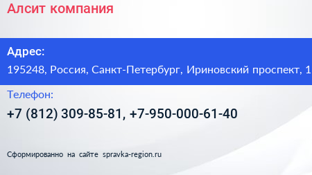 Алсит, компания по адресу 195248, Россия, Санкт-Петербург, Ириновский проспект, 1 в дальнейшем Организация, размещена в следующих категориях: