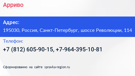 Арриво по адресу 195030, Россия, Санкт-Петербург, шоссе Революции, 114 в дальнейшем Организация, размещена в следующих категориях: