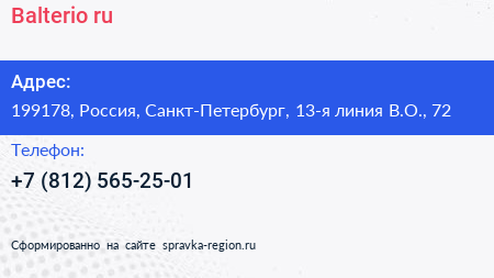 Balterio.ru по адресу 199178, Россия, Санкт-Петербург, 13-я линия В.О., 72 в дальнейшем Организация, размещена в следующих категориях: