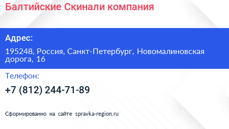 Балтийские Скинали, компания по адресу 195248, Россия, Санкт-Петербург, Новомалиновская дорога, 16 в дальнейшем Организация, размещена в следующих категориях: