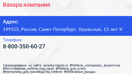Basspa, компания по адресу 199155, Россия, Санкт-Петербург, Уральская, 13 лит К в дальнейшем Организация, размещена в следующих категориях: