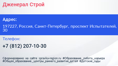 Дженерал Строй по адресу 197227, Россия, Санкт-Петербург, проспект Испытателей, 30 в дальнейшем Организация, размещена в следующих категориях: