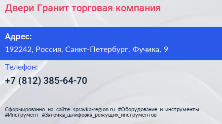 Двери Гранит, торговая компания по адресу 192242, Россия, Санкт-Петербург, Фучика, 9 в дальнейшем Организация, размещена в следующих категориях: