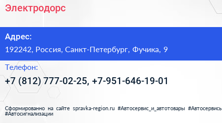 Электродорс по адресу 192242, Россия, Санкт-Петербург, Фучика, 9 в дальнейшем Организация, размещена в следующих категориях: