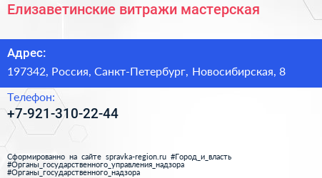 Елизаветинские витражи, мастерская по адресу 197342, Россия, Санкт-Петербург, Новосибирская, 8 в дальнейшем Организация, размещена в следующих категориях: