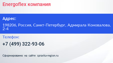 Energoflex, компания по адресу 198206, Россия, Санкт-Петербург, Адмирала Коновалова, 2-4 в дальнейшем Организация, размещена в следующих категориях: