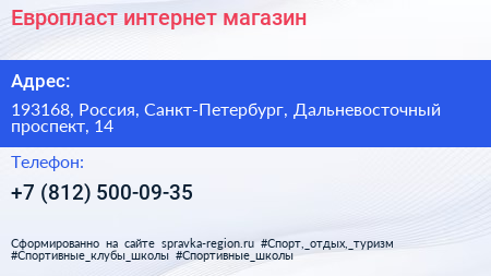 Европласт, интернет-магазин по адресу 193168, Россия, Санкт-Петербург, Дальневосточный проспект, 14 в дальнейшем Организация, размещена в следующих категориях: