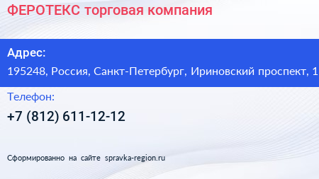 ФЕРОТЕКС, торговая компания по адресу 195248, Россия, Санкт-Петербург, Ириновский проспект, 1 в дальнейшем Организация, размещена в следующих категориях: