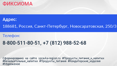 ФИКСИОМА по адресу 188681, Россия, Санкт-Петербург, Новосаратовская, 250/3 в дальнейшем Организация, размещена в следующих категориях: