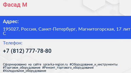 Фасад-М по адресу 195027, Россия, Санкт-Петербург, Магнитогорская, 17 лит С в дальнейшем Организация, размещена в следующих категориях: