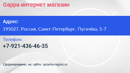 Gappa, интернет-магазин по адресу 195027, Россия, Санкт-Петербург, Пугачёва, 5-7 в дальнейшем Организация, размещена в следующих категориях: