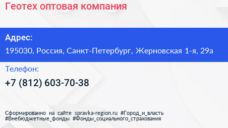 Геотех, оптовая компания по адресу 195030, Россия, Санкт-Петербург, Жерновская 1-я, 29а в дальнейшем Организация, размещена в следующих категориях: