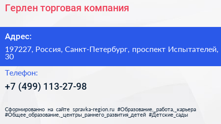 Герлен, торговая компания по адресу 197227, Россия, Санкт-Петербург, проспект Испытателей, 30 в дальнейшем Организация, размещена в следующих категориях: