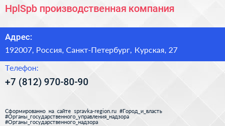 HplSpb, производственная компания по адресу 192007, Россия, Санкт-Петербург, Курская, 27 в дальнейшем Организация, размещена в следующих категориях: