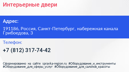 Интерьерные двери по адресу 191186, Россия, Санкт-Петербург, набережная канала Грибоедова, 3 в дальнейшем Организация, размещена в следующих категориях: