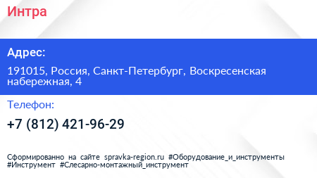 Интра по адресу 191015, Россия, Санкт-Петербург, Воскресенская набережная, 4 в дальнейшем Организация, размещена в следующих категориях: