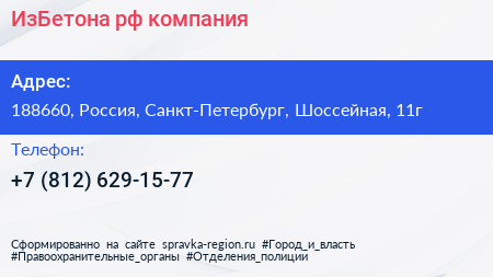 ИзБетона.рф, компания по адресу 188660, Россия, Санкт-Петербург, Шоссейная, 11г в дальнейшем Организация, размещена в следующих категориях:
