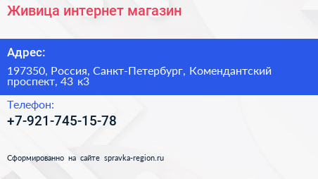 Живица, интернет-магазин по адресу 197350, Россия, Санкт-Петербург, Комендантский проспект, 43 к3 в дальнейшем Организация, размещена в следующих категориях: