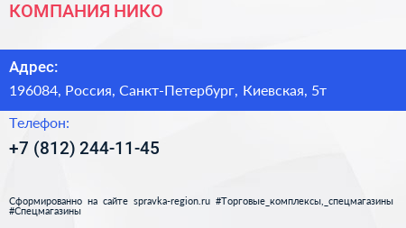КОМПАНИЯ НИКО по адресу 196084, Россия, Санкт-Петербург, Киевская, 5т в дальнейшем Организация, размещена в следующих категориях: