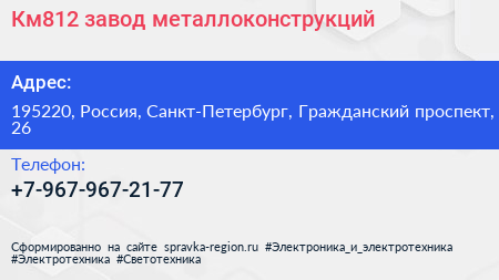Км812, завод металлоконструкций по адресу 195220, Россия, Санкт-Петербург, Гражданский проспект, 26 в дальнейшем Организация, размещена в следующих категориях: