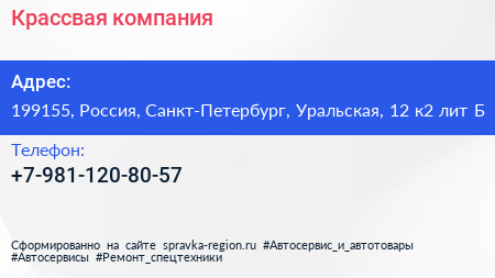 Крассвая, компания по адресу 199155, Россия, Санкт-Петербург, Уральская, 12 к2 лит Б в дальнейшем Организация, размещена в следующих категориях: