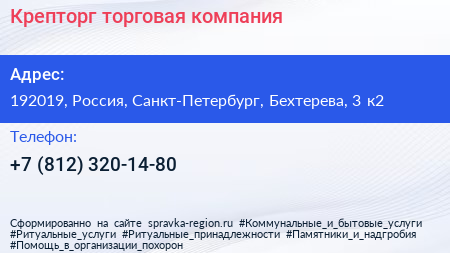 Крепторг, торговая компания по адресу 192019, Россия, Санкт-Петербург, Бехтерева, 3 к2 в дальнейшем Организация, размещена в следующих категориях: